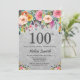 Silver Glitter Floral 100º Convite de Aniversário para Mulheres. Flor Floral de Aquarela. Fundo da Glitter de Prata. Rosa, Amarelo, Laranja, Flor Roxo. Aniversário Adulto. 13 15 16º 18º 20 21rua 30 40º 50º 60º 80 de 70 100º, qualquer idade. Para mais personalização, clique no botão "Personalizar" e use nossa ferramenta de design para modificar este modelo.