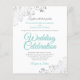 Silver Lace & Aqua BUDGET White Wedding Invitation