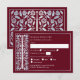 Celebrate your special day with these Royal Medieval Sword Wedding RSVP Cards against a red background. You can customize this further by clicking on the "PERSONALIZE" button. PLEASE NOTE: The silver on this item is NOT real foil and is printed in flat colors