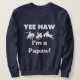 Yee Haw, eu sou uma camiseta Papuásia, canecas, cartões, adesivos, botões de anúncio, keepsakes de papá, e outros presentes de mamão com um cavalo de fivela e design de texto. Estes itens de roupa e presentes são perfeitos para avós pela primeira vez ou mamão temperado de uma nova chegada!