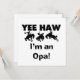 Yee Haw Eu sou uma camiseta Opa, canecas, cartões, adesivos, botões de anúncio, keepsakes opa, e outros presentes opa com um cavalo de entrelaçamento e design de texto preto ou branco. Estes itens de roupa de opa e presentes são perfeitos para avós pela primeira vez ou opas temperadas de uma nova chegada!