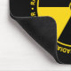 O mousepad preto e amarelo do símbolo da radiação faz uma indicação corajosa. Acessório legal da faculdade, trabalhos no dormitório ou o laboratório.