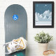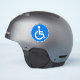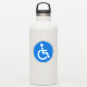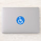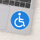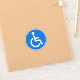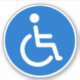 Cartazes redondos com o símbolo clássico de deficiência, um homem numa cadeira de rodas num fundo azul.
