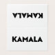 Símbolo de mesa de cartas dobrado preto e branco minimalista de tipografia ousada de Kamala. Texto preto sobre fundo branco sólido editável de cor.