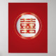Texto chinês caligrafia Símbolo de Felicidade Dupla em um Auspetico Fundo Vermelho Ilustração Desenhando Poster