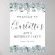 Bem-vindos aos seus convidados com este símbolo elegante. rosas azuis e poeirentos bonito, peônias e flores silvestres decoram o topo e a borda. Uma combinação de fontes clássica e fácil de ler leva apenas alguns minutos para ser personalizada.