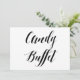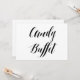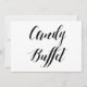 Simples e elegante sinal de casamento do estilo caligrafia preto e branco "Candy Buffet". Este cartaz de casamento "Candy Buffet" parece excelente impresso em um papel mate, se você precisar de algo mais tradicional, use o Laid, Linen ou Columned, para um toque rústico usar o Artisan Kraft, se você quiser adicionar um toque de vidro, use o Luxe. Clicando no botão "personalizar", você pode acessar a ferramenta do editor e escolher uma cor de fundo diferente. Este é um sinal de cartão impresso plano de 5" x 7", que ficará muito elegante em uma imagem.