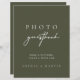 Uma placa de casamento minimalista projetada em verde-escuro com elegante tipografia moderna e um sotaque escrito à mão. Ideal para configurações de mesa do álbum de fotos — instrua os convidados a aprisionar uma foto e deixar uma mensagem para o casal. Totalmente editável e fácil de personalizar com nomes ou data de casamento. Pares lindamente com estilos de casamento modernos, rústicos e ao ar livre. Visualize o link de coleção nesta página para ver todos os itens correspondentes nesta bela design.