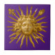 Símbolo de Luís XIV o Rei Sol (Roi Soleil) na porta ouro de Chateau de Versailles com fundo roxo