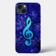 Impressão de símbolo de nota musical azul néon em um fundo de pintura respingada. Confira todos os produtos correspondentes em nossa Loja.
