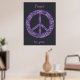 Estas posters personalizadas apresentam a minha pintura de um sinal de paz, que fiz com um estilo mosaico em tons de roxo e lavanda por um efeito ombre. O texto está escrito em roxo, que diz, Paz para vocês; pode ser personalizado na forma modelo. A cor de fundo é preta e faz parte do design. Obrigado por comprar CherylsArt no Zazzle.