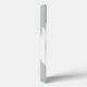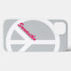 Um caso de cor prateada com um grande sinal de paz branco e um nome personalizado de cor rosa brilhante.