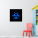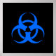 Poster preto com símbolo de risco biológico azul.