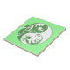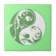 Um símbolo gracioso de yin & yang, verde e branco, com pergaminhos adoráveis. Altere a cor de fundo para branco ou qualquer cor para uma aparência dramática. Este azulejo incrível faz o presente perfeito para qualquer um.