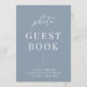 Um símbolo moderno e elegante de casamento para o seu livro de fotos apresenta um design azul e branco empoeirado minimalista com linhas modernas, uma letra elegante e letra de serifa elegante. Veja os itens correspondentes na coleção "Dusty Blue Modern Elegant".