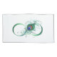 O símbolo do infinito com uma pena brilhante, verde, de pavão artístico sobre um fundo branco. Tatuagem.