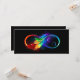 Símbolo infinito desenhado artificialmente com uma bela pena arco-íris sobre fundo branco. Tatuagem.