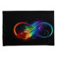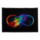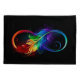 Símbolo infinito desenhado artificialmente com uma bela pena arco-íris sobre fundo branco. Tatuagem.