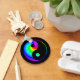 Chaveiro preto com símbolo yin yang espiral arco-íris.