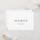 Esta placa reservada para tipografia chic é perfeita para um casamento moderno. A placa tem dois lados (impressões em ambos os lados). O simples design apresenta uma tipografia clássica minimalista a preto e branco com um toque rústico. Personalizável em qualquer cor. Mantenha o design mínimo e elegante, como está, ou personalize-o adicionando seus próprios gráficos e trabalhos de arte. Use estes cartões para reservar cadeiras ou mesas na cerimônia de casamento, recepção ou qualquer evento.