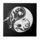 Um símbolo gracioso de yin & yang de preto e branco com pergaminhos adoráveis. Altere a cor de fundo para branco ou qualquer cor para uma aparência dramática. Este azulejo incrível faz o presente perfeito para qualquer um.