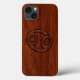 Um símbolo de Cancer zodíaco em um impressão marrom de madeira de mogno. Um design clássico rico para uma ideia de presente de aniversário personalizada de excelente. Use o link "Perguntar a este Designer" para entrar em contato conosco com suas solicitações especiais de design ou para obter assistência com suas necessidades de personalização.