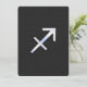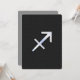 Um cromo prateado como Sagittarius zodiac num impressão de textura em estilo de pele cobra preta. Um design moderno urbano para uma ideia personalizada de presente de aniversário de excelente. Use o link "Perguntar a este Designer" para entrar em contato conosco com suas solicitações especiais de design ou para obter assistência com suas necessidades de personalização.