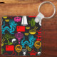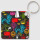 Toda uma série de diferentes símbolos chineses sobre um fundo preto. Esta design parece realmente eficaz nestes Chaveiro