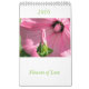 Calendário agradável com flores - simbols do amor. Dália da papoila do lírio do hollyhock do phlox de Bell da íris