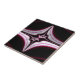 Este azulejo cerâmico simétrico apresenta arte fractal pontiaguda de abstrato em preto, rosa e branco.