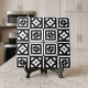 Negrito e mesmerizante, esse azulejo cerâmico preto-e-branco apresenta um padrão simétrico de explosão de estrelas com precisão geométrica. Diamantes negros e formas semelhantes a bússolas irradiam sobre um pano de fundo branco, criando um fluxo visual rítmico que parece clássico e moderno. É um motivo surpreendente que instantaneamente desenhar o olho e adiciona profundidade a qualquer superfície.