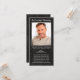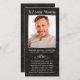 Esta elegante foto personalizada de simpatia No Loving Memory funeral Reayer Card apresenta uma foto bordada por uma fina falso moldura prateada e couro preto falso. Acima de um roteiro de cinzas, lê-se "In Loving Memory" com um nome e datas para personalizar junto com um breve memorial. A parte de trás do cartão tem uma oração de funeral que você pode deixar como está ou personalizar. Desenhada pela artista Susan Coffey.