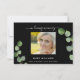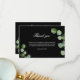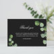 Um cartões de agradecimentos de simpatia simples e elegante com a foto. Um fundo preto clássico, e verde-lacrimejante de ecalyptus, prigos, folhagem. Personalize e adicione sua nota de agradecimento. Texto branco.