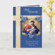 Apresentando uma bela imagem católica tradicional da Virgem Abençoada Maria com a Criança Jesus enfeitada em uma imagem vintage com flores azuis. Dentro é o Verso da Bíblia, O SENHOR É MEU ESTRANHO.