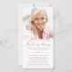 Este elegante cartão de oração de fúria fúnebre do memorial ilustrativo apresenta uma foto personalizada e, abaixo dela, lê-se o texto "In Loving Memory", com um nome, datas e mensagem memorial, acentuados por um divisor floral floral. A parte de trás da carta tem uma oração com uma camada de ouro rosa sobre fundo branco. Desenhado pela artista ©Susan Coffey.