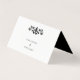 Black and white minimalistic place card with a decorative element at the top. These place cards go with our Black and White Minimalistic Wedding Suite.