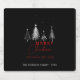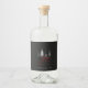 Transform your homemade spirits, wine, or special liquor gifts with these chic, custom holiday bottle labels. The design features a striking charcoal-black background, contrasting with simple white outlines of pine trees and delicate snow dots, creating a modern, wintry forest scene.