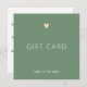 Elegant customizable gift certificate card design for beauty or fashion related professionals. Simple chic design with faux gold heart icon and green background.