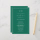Programa de Casamento Simples com um design moderno, mas elegante, com seu monograma de duas letras no topo e seus detalhes cercados por uma fina fronteira. Todo texto está em branco sobre um fundo verde esmeralda de tom joalheiro e pode ser alterado na ferramenta de edição de design. A frente tem sua ordem de cerimônia e a parte de trás tem sua festa de casamento e obrigado. Um design chic e na moda que é excelente para um casal minimalista. Estes programas de casamento baratos são impressos em folhas de papel para uma opção econômica.