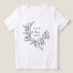 Esta camisa romântica de noiva apresenta uma bonito coroa botânica ilustrada com nomes personalizados e letra de roteirista de amor. Este belo design preto e branco é um presente perfeito para uma noiva ou namorada. Compre esta loja para coordenar decoração e presentes elegantes.