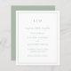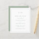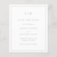 Um simples orçamento salve a data com um design moderno, mas elegante, com seu monograma de duas letras no topo e seus detalhes de casamento cercados por uma fronteira fina. Todos os elementos de design estão em verde de sábio e podem ser alterados na ferramenta de edição de design. Um design chic e na moda que é excelente para um casal minimalista.