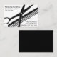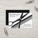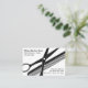 Cartões de visitas simples, mas ousados, de barbeiro comprado com tesouras cortantes e um layout elegante de cartão de chamada genérico e gráfico de pente que você pode personalizar online neste modelo editável.