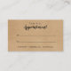 Cartão de lembrete de compromisso moderno e minimalista. Perfeito para uma grande variedade de profissões, incluindo estilistas, esteticistas, cabelos e consultores de beleza, spas, maquiadores, salões de unhas para citar alguns! Você pode adicionar seu nome e título no sentido inverso em um texto de cinza moderna de ardósias em um plano de fundo de kraft rústico correspondente. Projetado por Thisnotme©