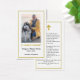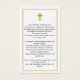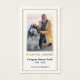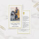 Uma fotografia do seu amado é mostrada nesta elegante carta de oração. Ela é revestida com uma simples estrutura branca, enquanto uma estrutura reluzente dourada envolve tanto a frente quanto a trás. Na memória amorosa está escrito em texto dourado com o nome do falecido, datas de vida e uma mensagem personalizada abaixo. Uma cruz de ouro é colocada no topo. Há espaço para um verso, oração, salmo ou lembrança favoritos da bíblia.
