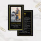 Uma fotografia do seu amado é mostrada nesta elegante carta de oração. Ela é revestida com uma simples estrutura branca, enquanto uma estrutura reluzente dourada envolve tanto a frente quanto a trás. Na memória amorosa está escrito em texto dourado com o nome do falecido, datas de vida e uma mensagem personalizada abaixo. Uma cruz de ouro é colocada no topo. Há espaço para um verso, oração, salmo ou lembrança favoritos da bíblia.