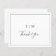 Simples cartões de agradecimentos de casamento orçamentário com um design moderno, mas elegante, com seu monograma de duas letras junto com "obrigado você" em uma letra manuscrita cercada por uma fina borda. O verso tem sua mensagem personalizada. Todos os elementos de design estão em verde-floresta e podem ser alterados para qualquer cor desejada na ferramenta de edição de design. Um design chic e na moda que é excelente para um casal minimalista.