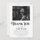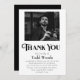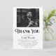 Uma mensagem simples e minimalista de funeral "Obrigado", que pode ser personalizada com uma foto do seu amado. Estas cartas podem ser enviadas a amigos e familiares que vos mostraram apoio, amor e bondade durante o vosso tempo de luto. Substitua a foto por uma sua. Você pode usar uma foto colorida ou uma versão em preto e branco. Edite o texto para sua própria mensagem.