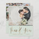 Chic e contemporâneo, este cartões de agradecimentos de casamento minimalista apresenta caligrafia grande e elegante em um luxuoso falso efeito de folha de ouro em um fundo verde macio, com espaço para mostrar cinco de suas fotos favoritas de casamento. Este na moda, design de dois lados é perfeito para compartilhar seu dia especial com amigos e família enquanto expressa uma sincera gratidão. Personalize facilmente com suas próprias imagens e mensagens para criar uma manutenção verdadeiramente única. Ideal para noiva e noivo, obrigado cartas, estoque de fotos de casamento postado, ou foto de casamento personalizada, obrigado notas.
