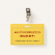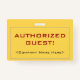 Este simples design de crachá apresenta a mensagem "GUEST! AUTORIZADO!" e um nome de empresa personalizável ou outra mensagem personalizada. Ele também apresenta uma fronteira dupla. Um crachá como este poderia ser usado para identificar que alguém em um local de trabalho ou empresa é um convidado/visitante autorizado. [~Z0000307]
