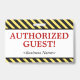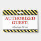Este simples design de crachá apresenta a mensagem "GUEST! AUTORIZADO!" e um nome de empresa personalizável ou outra mensagem personalizada. Um crachá como este poderia ser usado para mostrar que alguém em uma empresa ou no local de trabalho é um convidado ou visitante autorizado. [~Z0000307]